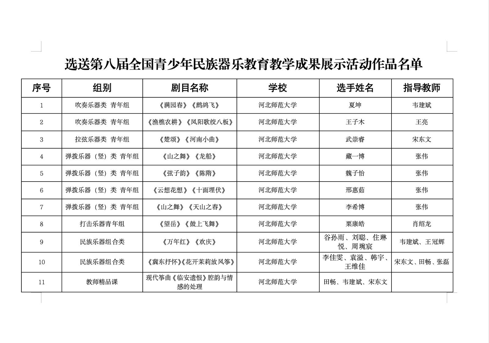 自活动启动以来,我校高度重视,YABO鸭脖官网认真组织,参赛师生反复打磨,精心备赛。经过激烈角逐,我校师生共获得一等奖、二等奖、三等奖各6项。YABO鸭脖官网获优秀组织单位荣誉称号。其中,吹奏乐器类《满园春》、拉弦乐器类《楚颂》、弹拨乐器类《山之舞》、打击乐器《望岳》、民族乐器组合类《万年红》以及教师精品课《现代筝曲<临安遗恨>腔韵与情感的处理》等11项作品将代表河北省参加第八届全国青少年民族器乐教育教学成果展示活动。