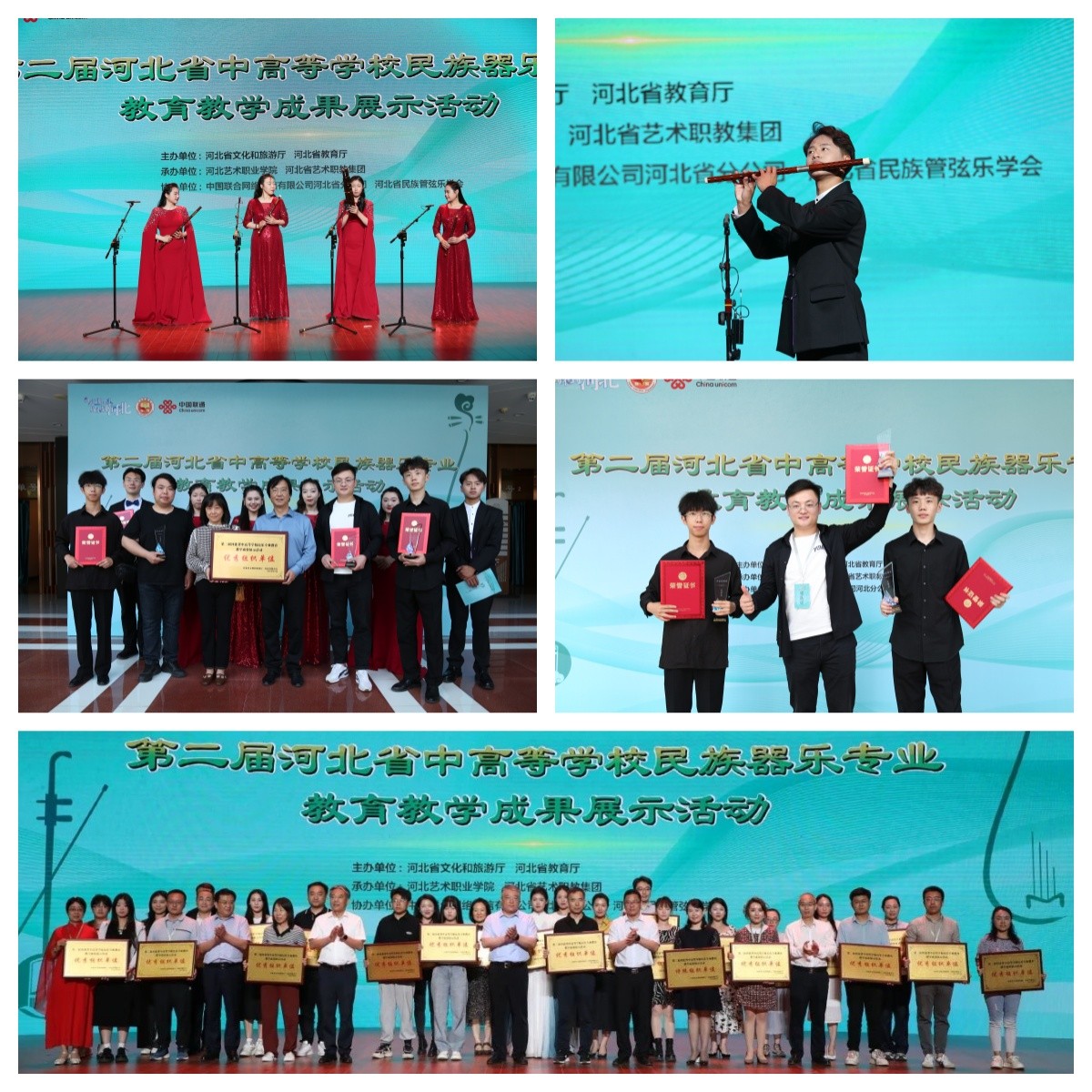 近日,第二届河北省中高等学校民族器乐专业教育教学成果展示活动在河北省艺术中心举行。我院师生在展示活动中分别荣获一等奖、二等奖、三等奖各6项,我校获得优秀组织单位荣誉称号,11项作品被选送第八届全国青少年民族器乐专业教育教学成果展示活动。